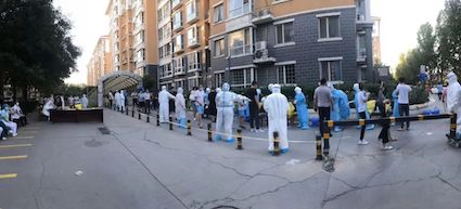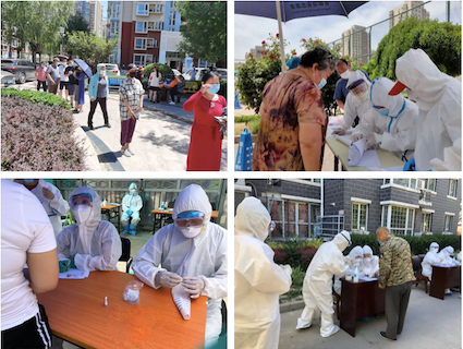 紧张有序的采样现场,随处可见博奥工作人员的忙碌身影,接连几日,从上午7、8点一直忙碌到凌晨4、5点,37度的高温下,数百名博奥人始终坚守一线。