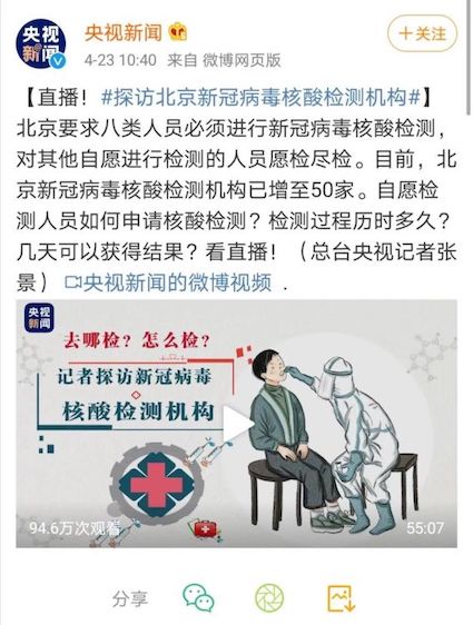 为加强常态化疫情防控,北京扩大核酸检测范围,对重点人群实行应检尽检,对其他人群实行愿检尽检。近日,新华社、中央电视台等多家媒体记者来到北京市卫健委公布的第一批提供新冠病毒核酸检测服务的核酸检测点-北京博奥医学检验所,实地探访个人核酸检测全流程。