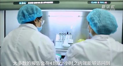 白兴华介绍,若样本中含有新冠病毒,随着扩增反应的进行,检测系统可观察到荧光信号的显著上升,从而判定受检者是否感染。随后,受检者可在线上查询检测报告。