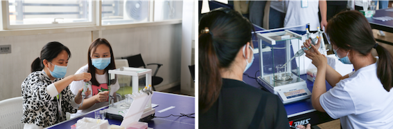此次技能大赛共有来自生命科学服务部、医学服务部、科研管理中心研发一部和研发二部、HLA服务部和实验诊断部等部门共168名员工报名参加,比赛分为笔试与实操两部分。笔试是基础,只有掌握扎实的实验室规章制度和管理、生物安全、仪器操作注意事项等基础知识,才能练就过硬的专业技能。今年笔试部分增加了新型冠状病毒相关题目,结合疫情防控需要,强化相关检测安全知识。实操部分将理论与实践相结合,考验实验员移液器操作技能:分别取3次液体进行称量,考核移液器使用的重复性、准确性及仪器操作是否规范,着眼业务能力和熟练程度比拼。