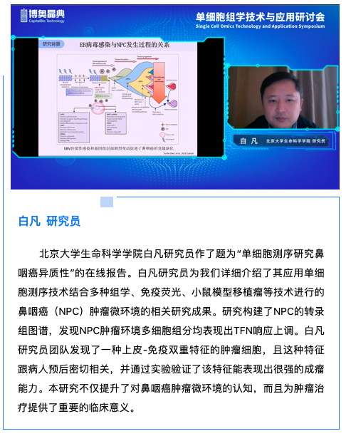 2020年10月31日,由生物芯片北京国家工程研究中心、北京博奥谈球吧生物技术有限公司主办的“单细胞组学技术与应用研讨会”在北京成功举办。在疫情防控新形势下,本次大会以线下现场会议与线上远程会议相结合的形式举办,打破时空及地域限制,以更宽更广的交流平台,让全国各地的单细胞领域专家学者共同见证本次大会的精彩瞬间。本次会议线上累计直播浏览量超6000人次,线下100余位嘉宾出席。会议特采用专业级演播大厅进行直播报告,通过5G+4K+AR的创新技术和高品质传输进行全程实时直播,为现场及远程参会代表带来极好的视听体验。