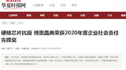 博奥谈球吧荣获“2020年度企业社会责任先锋奖”