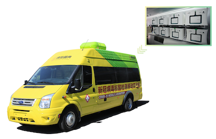 博奥开发出了新冠病毒核酸检测移动实验室,里面包括口腔咽拭子采样机器人、病毒快速灭活仪、全集成新型冠状病毒核酸检测芯片及配套试剂、全自动微流控核酸分析仪、数据采集和分析软件及计算机、发电机、低温冰箱、监控系统、基于5G的检测结果直报系统等。