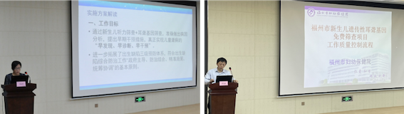福州市卫健委妇幼处副处长刘丽特解读项目实施方案(左)福州市妇幼保健院耳鼻喉科主任黄长班解读项目质控流程(右)