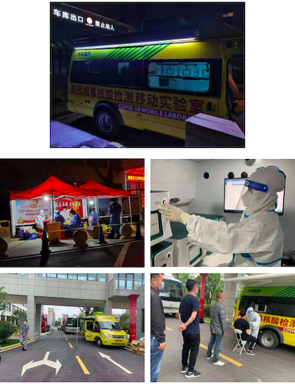 5月中旬,安徽省突发新冠疫情,为保障六安市核酸检测按时完成,博奥谈球吧“轻骑兵”全集成新冠病毒核酸检测移动实验室连夜赶到六安。在六安市卫健委的统一部署下有序开展当地居民新冠病毒的核酸检测工作。