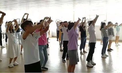 八段锦作为中国传统的养生功法之一,采用动静结合、身心互动、健患均益的健身方法。讲究“调心”、“调息”、“调身”三者一致,有机结合,相互穿插。同学们在专业老师的带领下体验中国特色养生功法。