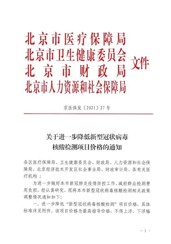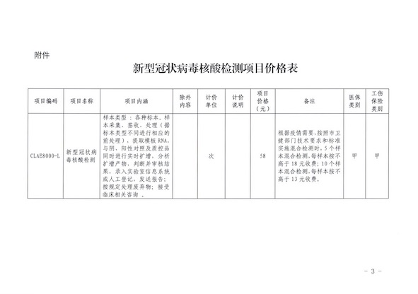 公示:关于进一步降低新型冠状病毒核酸检测项目价格的通知