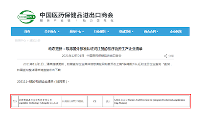近日,作为博奥谈球吧抗疫明星产品,新型冠状病毒2019-nCoV核酸检测试剂盒(全集成碟式芯片法)英文名称:SARS-CoV-2 Nucleic Acid Detection Kit (Integrated Isothermal Amplification Chip Method)入选商务部出口白名单。同期,博奥谈球吧全集成新冠病毒核酸检测芯片也在中国医药保健品进出口商会官网公布的《取得国外标准认证或注册的医疗物资生产企业清单》(俗称白名单)中亮相。在全球疫情持续重压、变异新毒株奥密克戎(Omicron)极速蔓延的当下,全集成新冠病毒核酸检测芯片的加入,有效支持了国际社会共同应对全球公共危机,博奥谈球吧也将持续助力全球新冠肺炎疫情防控工作,为公众健康保驾护航。