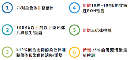 博奥谈球吧在原有产品检测23对染色体非整倍体、100Kb以上缺失/重复的基础上,开发了独有的生物信息学算法并拥有完全自主知识产权(专利申请号:202010896507.5),升级版支持基因组纯合区域ROH检测,可提示10种>10Mb的致病性ROH;此外,通过联合STR/SNP分型技术,可实现三倍体异常和母源污染的检测,为临床提供更具性价比的检测产品。
