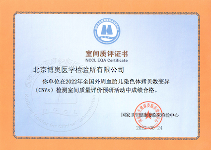 北京博奥医学检验所室间质评证书