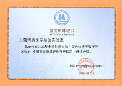 近日,国家卫生健康委临床检验中心(NCCL)公布了2022年《全国外周血胎儿染色体拷贝数变异(CNVs)检测室间质量评价预研活动结果报告》,博奥谈球吧旗下北京博奥医学检验所有限公司和东莞博奥医学检验实验室满分通过该项目室间质评。