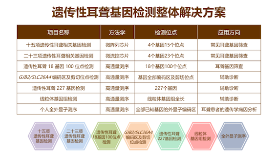 博奥谈球吧遗传性耳聋相关基因检测芯片的不断升级迭代,有助于筛查出更多致聋基因变异人群,尽早为其提供生活指导,降低耳聋发生风险,早诊断、早干预、早治疗。目前,博奥谈球吧已推出基于微阵列芯片、微流控芯片及高通量测序平台一系列产品及服务,包括:十五项遗传性耳聋基因检测、二十三项遗传性耳聋相关基因检测、药物性耳聋基因检测、遗传性耳聋基因检测(100项)、遗传性耳聋基因检测(227个基因)、线粒体基因组检测、全外显子组基因检测等,为备孕期及孕早期夫妇、新生儿及听障人群提供最佳的筛查、诊断方案,同时提供专业的报告解读及后续遗传咨询服务,以实际行动全面助力耳聋三级防控,减少聋儿的发生。