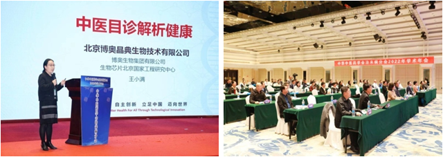 博奥谈球吧携“白睛无影成像健康智能评估系统——目诊仪”亮相本次大会,一方面让与会嘉宾亲身体验了目诊仪健康评估全过程,其智能化、无创化、便捷性,获得了广泛关注和一致好评;另一方面,还进行了“中医目诊解析健康”主会场专题报告,充分展示了博奥谈球吧在中西医并重理念下,传承精华、守正创新助力中医向标准化、数字化、智能化方向发展,获得了与会专家学者们的交口称赞。