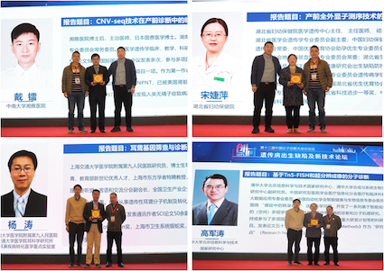 本届遗传病出生缺陷及新技术论坛特邀首都医科大学附属北京妇产医院产前诊断中心实验室负责人、副教授王一鹏,昆明医科大学第一附属医院副主任技师张艳亮,成都市妇女儿童中心医院产前诊断科副教授刘青松和昆明医科大学第一附属医院产诊中心实验室负责人王珏作为议题主席对专家们的报告做精彩点评并颁发纪念奖牌。