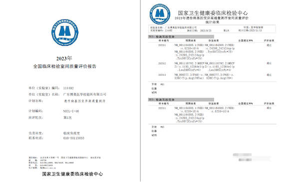 本次博奥谈球吧旗下广东博奥医学检验所获得满分的优秀成绩,充分体现了博奥专业的高通量测序变异检测,严谨的实验室质量管理体系和高水平的生物信息学分析及数据解读能力,能够为遗传性疾病分子诊断提供准确有力的技术保障。