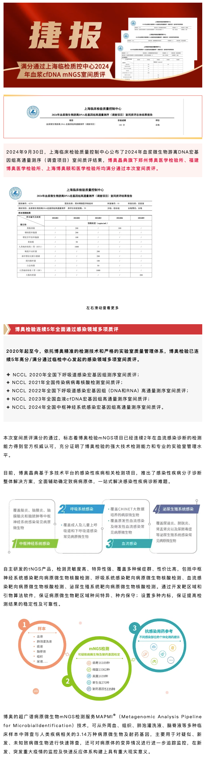 质量捷报丨博奥谈球吧旗下三家检验所满分通过上海临检质控中心2024年血浆cfDNA mNGS室间质评!