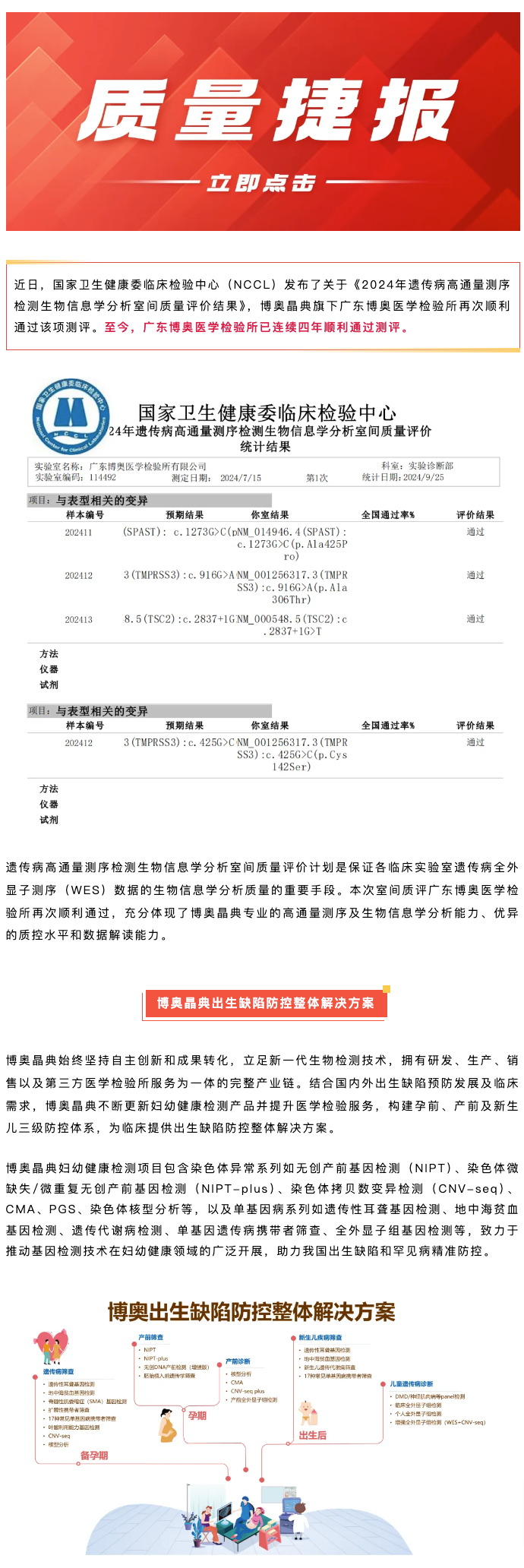 喜讯丨博奥谈球吧旗下检验所满分通过2024年NCCL遗传病高通量测序检测生物信息学分析室间质评