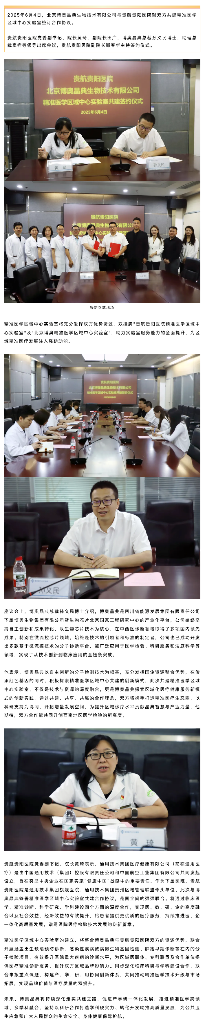 做共建 找谈球吧丨博奥谈球吧与贵航贵阳医院签订精准医学区域中心实验室共建合作协议