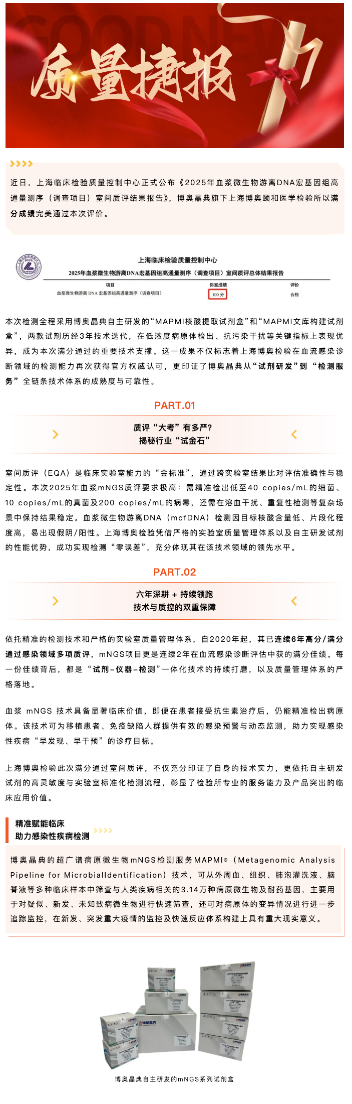 品质加冕!博奥谈球吧旗下上海博奥检验满分通过2025年血浆mNGS室间质评