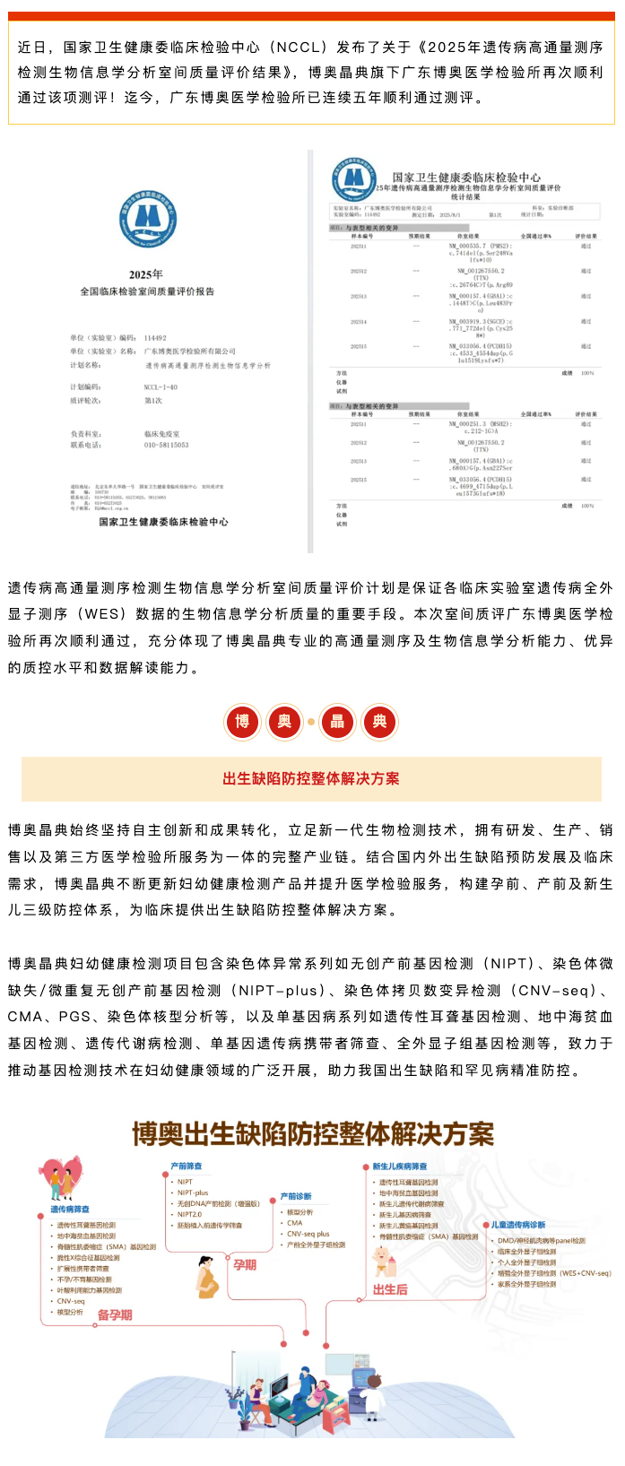 质量捷报 | 博奥谈球吧旗下检验所满分通过2025年NCCL遗传病高通量测序检测生物信息学分析室间质评